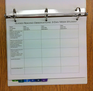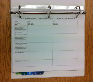 Below are pictures from my guided reading binder that I will use to keep track of formative assessment data from anecdotal notes on each student in my guided reading groups.